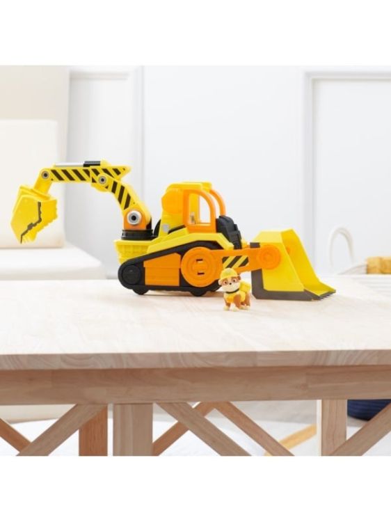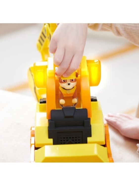 Fa echipa cu catelul tau preferat din Patrula catelusilor, Rubble, in buldozerul sau Bark Yard Deluxe. Aceasta jucarie fantastica pentru constructii are roti care functioneaza cu adevarat, doua unelte de jucarie articulate, precum si lumini si sunete captivante, care o fac sa fie de nelipsit pentru fanii seriei Rubble si echipa lui. Acest set minunat de personaje de jucarie si vehicule include o figurina Rubble care masoara peste 5 cm inaltime si este imbracata in uniforma oficiala Rubble si a echipei lui, astfel incat arata exact ca in serial. Cand este timpul pentru actiune, aseaza-l pe Rubble in scaunul soferului si impinge-l in jos pentru a activa luminile interesante si efectele sonore pe care le stii din serial. Foloseste excavatorul de jucarie articulat pentru a incepe sa sapi, apoi muta pamantul din drum folosind cupa mobila a buldozerului, exact cum face Rubble. Pentru si mai multe moduri de joaca interesante, cauta in magazine toate jucariile cu camioane de constructii Rubble si echipa lui, personajele de jucarie si seturile de joaca cu nisip kinetic de construit, impreuna cu setul de jucarii cu macara inalta Bark Yard si setul de jucarii din atelierul lui Rubble, pentru a-ti extinde si mai mult lumea constructiilor in care te joci (fiecare vandut separat). Adu la viata entuziasmul seriei Rubble si a echipei lui cu buldozerul Deluxe al lui Rubble Bark Yard.