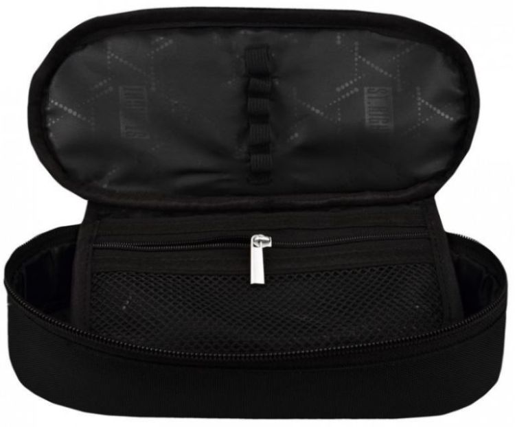- clapetă interioara pe o parte cu buzunar inchis cu fermoar, iar pe cealalta parte cu spatii suplimentare pentru instrumentele de scris