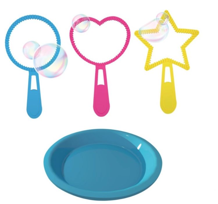 Set mini de baloane de sapun 150 ml, Peppa Pig. Copiii pur si simplu adora sa se joace cu aceste bule, care le aduc o distractie si o bucurie incredibile. Lasati-i pe cei mici sa se cufunde in lumea minunata a jocului cu baloanele de sapun Peppa Pig si vedeti-i cum se distreaza si zambesc. Turnati o cantitate mica de solutie intr-un bol. Introduceti complet bagheta de suflare in lichid. Ridicati incet bagheta, asigurandu-va ca membrana solutiei de sapun este intinsa peste toate cercurile baghetei. Suflati puternic si prelung pe membrana de sapun pentru a forma baloane. Pachetul contine o sticla de 150 ml cu solutie pentru baloane de sapun, o farfurie din plastic, 3 forme de suflare. Compozitia solutiei apa si surfactanti. Solutia este non-toxica.
