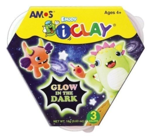 -Plastilina Amos iClay IC18P3-GD, 18g, roz fosforescent, verde fosforescent, portocaliu fosforescent, set 3 culori