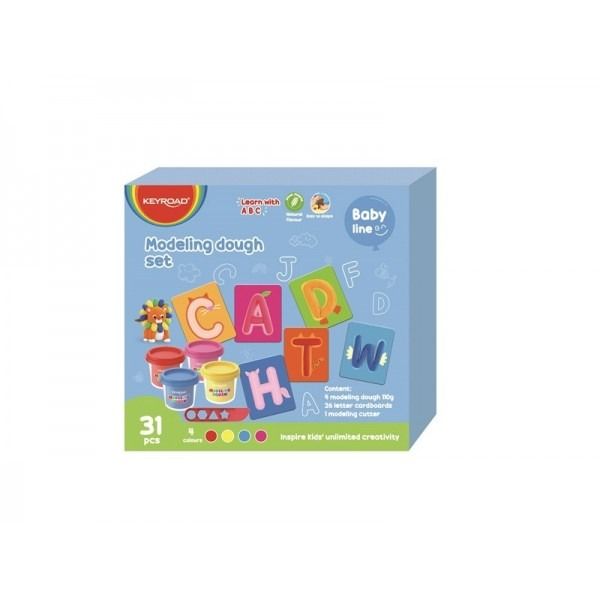 Plastilina Keyroad Baby Line KR972359, Dough, 4culorix110g+26 litere carton+1 cutter plastic