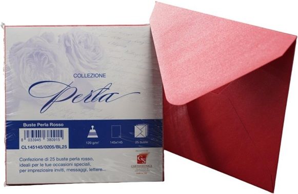 Plic color pentru invitatie Colorarte Perla, rosu perlat, 120g/mp, 145x145mm, set 25 buc