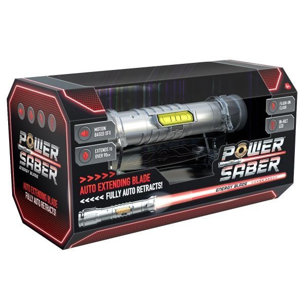 Power Saber este prima sabie din lume cu extensie si retragere completa automata. Cu efecte sonore activate prin miscare, flash-uri la impact si led in-hilt integrat, aceasta sabie ofera cea mai realista experienta. Extindeti sabia pana la 90cm si pregatiti-va pentru lupta! Dupa lupta, Power Saber poate fi asezata pe suportul inclus sau poate fi agatata de curea. Acesta sabie este recomandata pentru varsta de 6 ani +. Este disponibila in 2 culori: rosu si verde. Necesita 4 x baterii AA (nu sunt incluse).