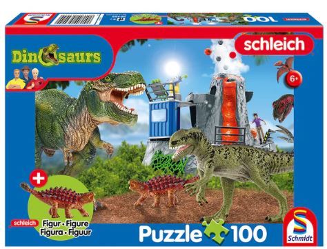 Puzzle Schmidt: Dinozauri din timpuri preistorice - contine 100 de piese de puzzle + Cadou: figurina dinozaur Saichania.