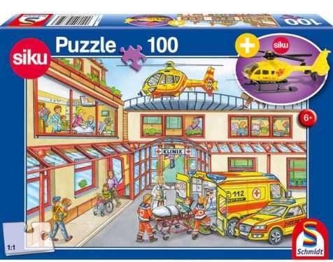 -Puzzle 100 piese, Elicopter de salvare + Cadou: macheta Siku, Schmidt