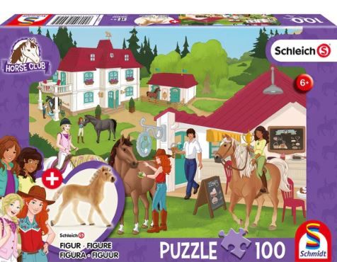 -Puzzle 100 piese, Schleich - Horse Club: Grajduri de echitatie + Cadou: figurina cal, Schmidt