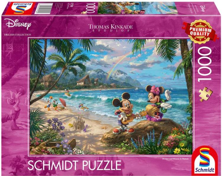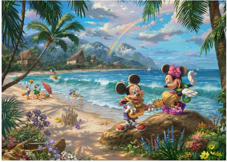 Puzzle Schmidt: Thomas Kinkade - Disney - Mickey si Minnie in Hawaii - contine 1000 de piese de puzzle.