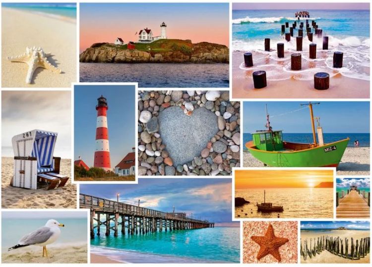 Puzzle Schmidt: La malul marii contine 1000 de piese de puzzle. Cat de frumos este marea si excursiile petrecute pe litoral. Insa acest puzzle cu o multime de imagini din diverse locatii de pe malul marii, il veti putea rezolva indiferent de anotimp si veti putea sa rememorati cele mai frumoase amintiri din aceasta zona!