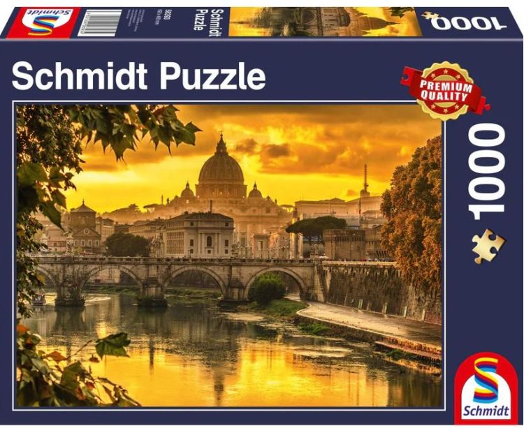 Puzzle Schmidt: Lumina de aur peste Roma contine 1000 de piese de puzzle. Roma este capitala Italiei, situat pe malul fluviului Tibru, are o populatie de aproximativ 2. 000. 000 persoane. Lumina de aur s-a depus deasupra Romei si a devenit un peisaj mirific. Descopera toate detaliile, rezolvand acest puzzle minunat pas cu pas!
