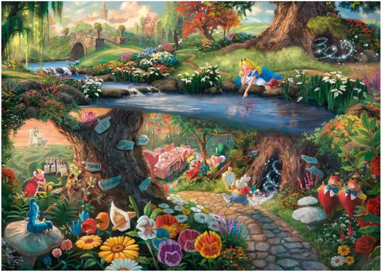 Puzzle Schmidt: Thomas Kinkade - Disney - Alice in Tara Minunilor, 1000 piese - este un roman fantastic scris de autorul britanic Lewis Carroll (Charles Lutwidge Dodgson) in 1865. Povestea se bucura de o popularitate constanta atat in randul copiilor, cat si a adultilor. Cartea este considerata unul dintre cele mai bune exemple a literaturii absurdului. Se folosesc numeroase glume si aluzii matematice, lingvistice si filosofice. Trasaturile istoriei și structura ei au avut o influenta puternica asupra artei, in special asupra genului literar fantastic.