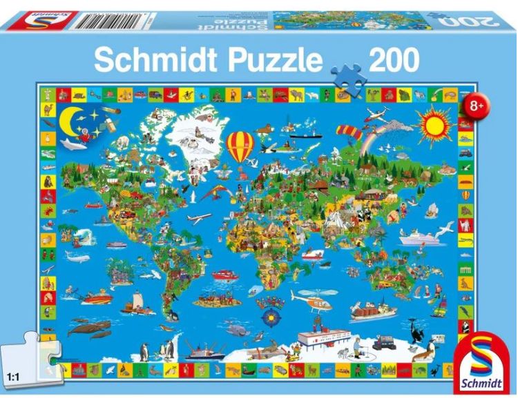 Puzzle Schmidt: Lumea ta uimitoare, contine 200 piese de puzzle. Daca iti place geografia si vrei sa decsoperi harta lumii intr-un mod distractiv, atunci acest puzzle este ideal pentru tine. Descopera lumea pas cu pas, realizand acest puzzle minunat!