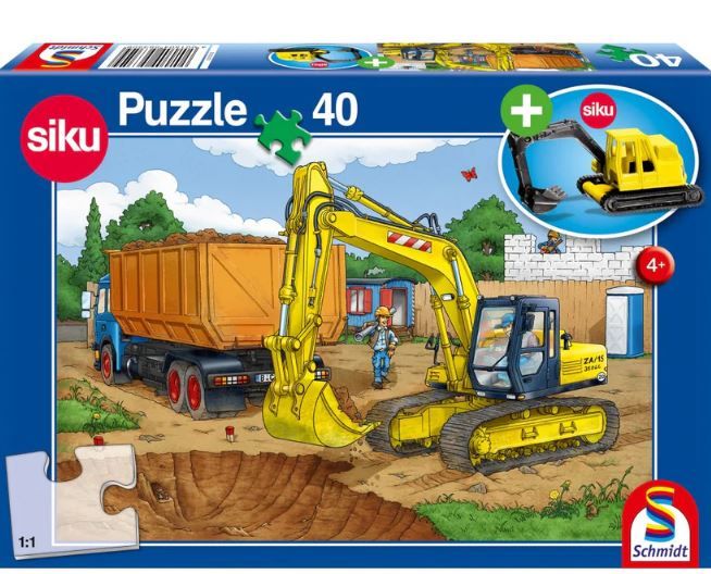-Puzzle 40 piese + Cadou: macheta Siku, Excavator, Schmidt