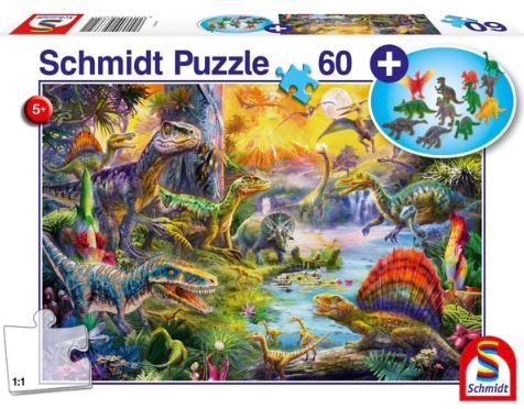 -Puzzle 60 piese Dinozauri + Cadou figurina, Schmidt