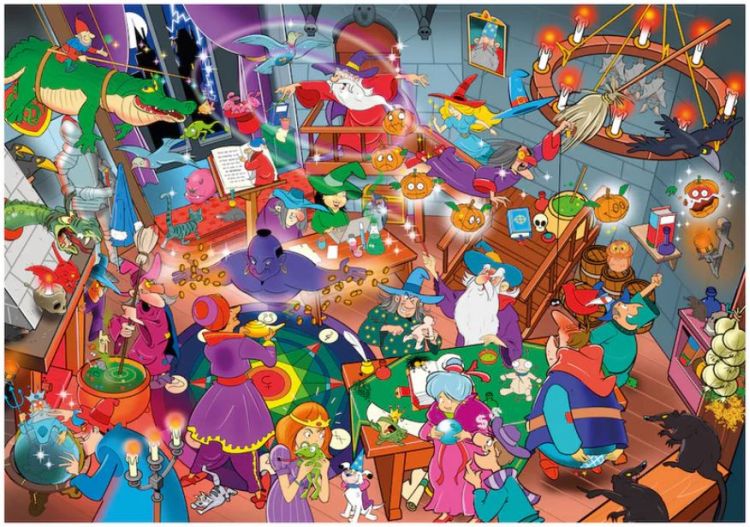 Puzzle Cauta si Gaseste - La scoala de magie si vrajitorie ofera o scena dintr-o scoala plina de magie, aglomerata, aceasta fiind plina de haos! Asamblati-l sau transformati-l intr-o aventura de familie - in orice caz, promite o multime de distractie!