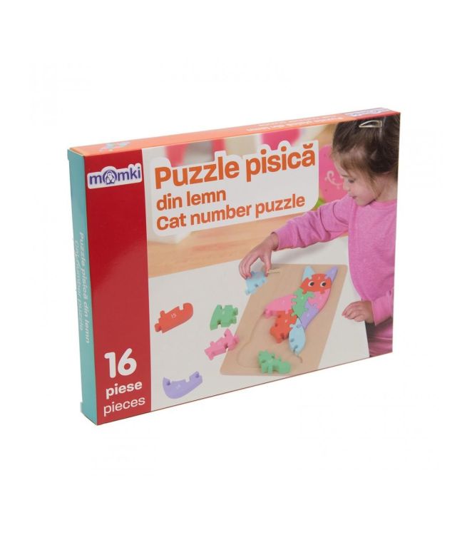 -PUZZLE DIN LEMN, PISICA, 16 PIESE, MOMKI
