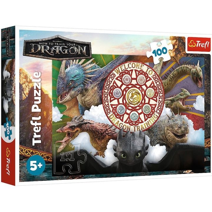 -PUZZLE TREFL 100 CUM SA ITI DRESEZI DRAGONUL DRAGONI IN ACTIUNE
