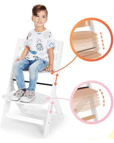 Exista un scaun inalt pentru hranire care ii va servi copilului cativa ani? Da! Este vorba despre ENOCK FULL WHITE. Aceasta piesa de mobilier atemporala este atat un scaun inalt si sigur pentru hranire, cat si un scaun ergonomic pentru copiii mai mari. Cum este posibil acest lucru? Înaltimea scaunului si suportul pentru picioare sunt reglabile, ceea ce faciliteaza reglarea scaunului in functie de varsta copilului. ENOCK FULL WHITE a fost conceput cu sa se potriveasca in interiorul casei dumneavoastra si mai tarziu cand va servi drept scaun pentru joaca sau pentru birou. Îl veti putea asorta cu usurinta la masa din bucatarie, sufragerie sau camera de zi. Datorita spatarului profilat, copilul va mentine postura corecta in timp ce mananca si va putea petrece timpul la masa impreuna cu adultii. Avantaje Siguranta: Centurile de siguranta in 3 puncte de pe scaunul inalt pot fi indepartate cu usurinta atunci cand ENOCK FULL WHITE este transformat intr-un scaun pentru copii mai mari. O bariera de siguranta pentru copiii mai mari care doresc sa stea cu parintii la o masa inalta. Lemnul de fag solid si placajul folosite pentru a crea scaunul, confera constructiei rezistenta. Scaunul respecta standardele EN 14988 (standarde care determina siguranta scaunelor inalte). Confort: Spatar profilat - bebelusului ii va fi intotdeauna confortabil, indiferent daca are 10 luni sau 5 ani. Pe tava larga pentru cei mai mici vor incapea nu numai farfurii sau castronase. Este suficient de mare pentru ca un copil sa poata face desene sau sa se joace cu cuburile. Scaunul este larg si adanc, datorita caruia si copiii mai mari ca inaltime si varsta nu vor avea nicio problema cu sederea comoda si confortabila. Scaunul este usor de curatat. stergeti-l imediat cu o carpa umeda si apoi cu servetel uscat. ENOCK FULL WHITE este foarte atent finisat - textura intregului scaun este perfect neteda si placuta la atingere. Functionalitate: Multifunctional - puteti transforma scaunul de hranire intr-un scaun pentru un copil mai mare in cateva secunde, apoi chiar si pentru un prescolar. ENOCK FULL WHITE va servi copilului intre 6 luni si 10 ani! Greutatea maxima a copilului pe scaunul inalt: 15 kg, iar pe scaunul mic: 35 kg (aproximativ 10 ani). Reglarea spatarului se face pe 5 niveluri in cazul scaunului inalt si 2 niveluri in cazul scaunului pentru hranire. Suportul pentru picioare reglabil (4 niveluri in cazul scaunului inalt si 3 in cazul scaunului pentru hranire) mareste confortul mancarii bebelusului. Bara si centurile detasabile va permit sa reglati scaunul in functie de varsta copilului. Constructia usoara va permite sa transportati cu usurinta scaunul Design atemporal - scaunul se va potrivi cu interioarele in diverse stiluri: scandinav, minimalist, clasic: ENOCK FULL WHITE se va integra intotdeauna minunat.