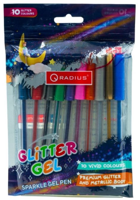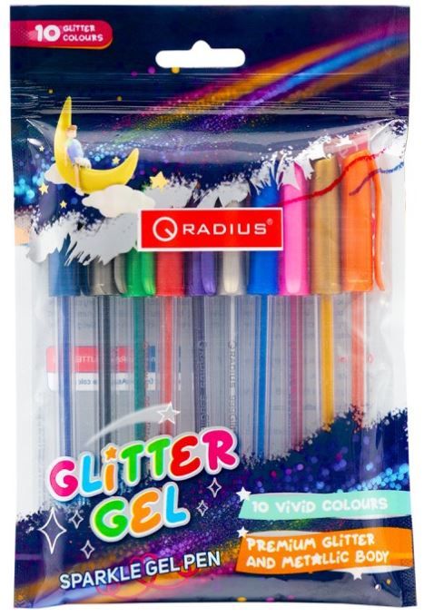 Set 10x Pix cu gel Radius Glitter Gel, 1. 0mm, cu capac, corp transparent, 10 culori cu sclipici