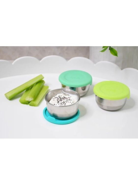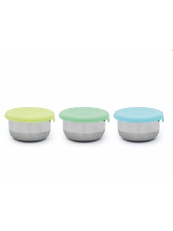-SET 3 RECIPIENTE MINI INOX CU CAPAC SILICON, MELII, BLEU MINT LIME