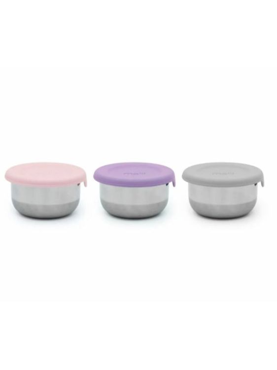 -SET 3 RECIPIENTE MINI INOX CU CAPAC SILICON, MELII, ROZ MOV GRI