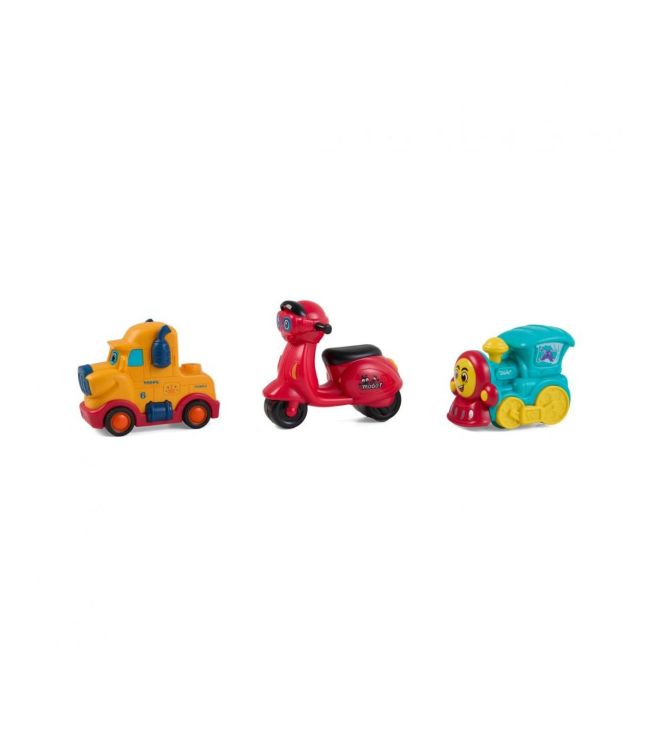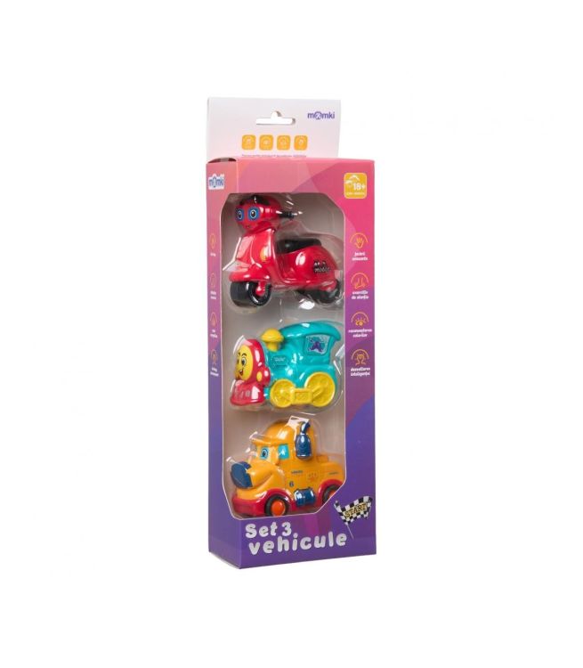 Descopera setul de 3 vehicule actionate prin inertie MomKi, perfecte pentru joaca si dezvoltarea motricitatii celor mici. Modele si culori variate pentru distractie garantata.