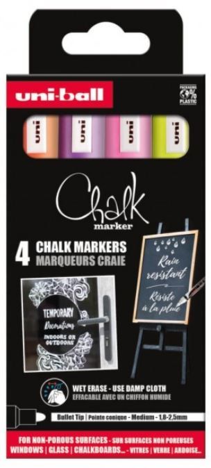-Set 4x Marker cu creta UNI Chalk PWE-5M ASSF16, 1.8-2.5mm, galben, roz, violet, portocaliu