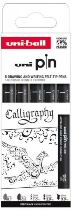 -Set 5x Liner UNI PIN-200 ASP015, pe baza de apa, varf 0. 1-0. 5mm + tesit 1. 0-3. 0mm, negru