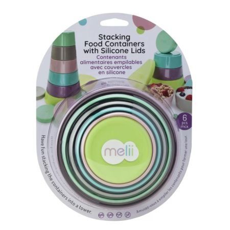 Set 6 recipiente hrana bebe, Melii, model turn Recipientele noastre din silicon, cu capac pentru asezare si imbinare, sunt recipiente alimentare care se pot suprapune intr-un turn distractiv. Ele se imbina una in cealalta pentru depozitare compacta si vin in 6 dimensiuni convenabile pentru toate nevoile dumneavoastra de depozitarea alimentelor, gustarilor si meselor. Capacul rezistent din silicon se intinde peste baza recipientului pentru o potrivire stransa, care sigileaza prospetimea si previne mizeriile. CARACTERISTICI PRODUS Recipiente usor de suprapus, intr-un turn distractive depozitare alimente si jucarie in acelasi timp, colorate in mai multe culori Recipientele se fixeaza unul de altul pentru o depozitare compacta Capac din silicon ermetic si antipicurare, cu o fixare stransa. Usor de curatat in masina de spalat vase pe raftul superior Fara BPA, plumb, PVC, cadmiu, ftalati Dimensiuni 150ml, 230ml, 300ml, 400ml, 530ml, 700ml