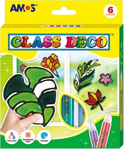 Setul conţine: 6 culori Glass Deco x 10, 5 ml, coli plastic, pliant cu modele și pliant cu instrucțiuni.