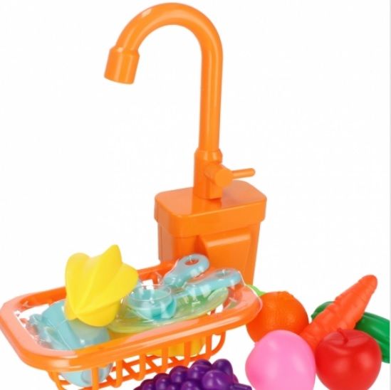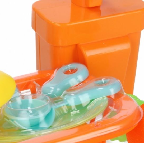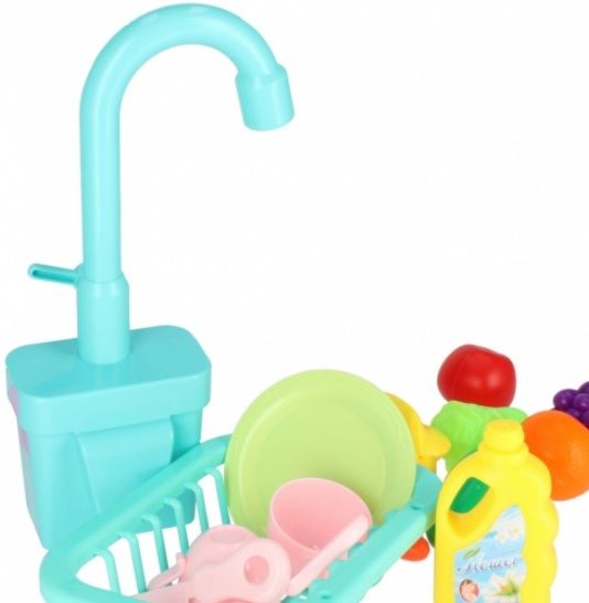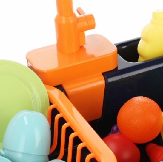 Conținut setului: chiuvetă, lichid de spălat, accesorii de bucătărie: legume, fructe, 1x farfurie, 1x tacâmuri, 2x cană.