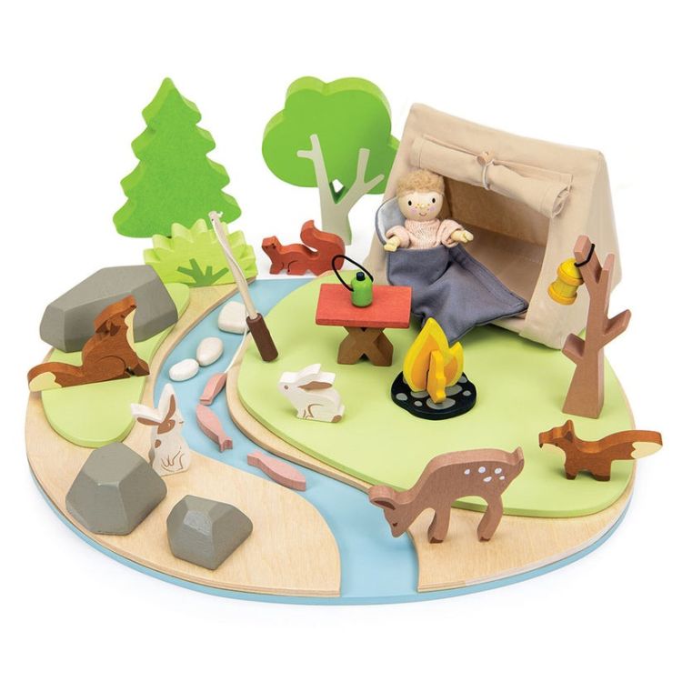 -Set de joaca camping in natura, din lemn premium Wildlife Camping Playset