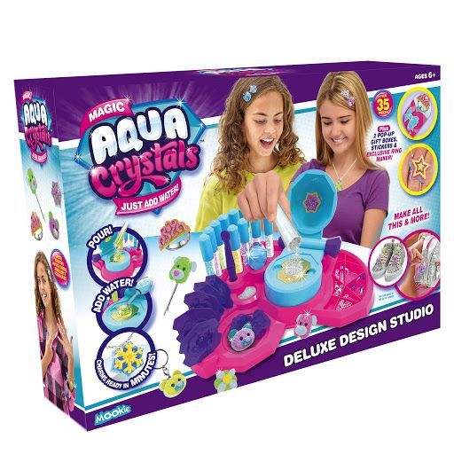 Adaugati apa si realizati creatii incredibile din cristal cu Aqua Crystals Deluxe. Setul de joaca Aqua Crystals include tot ce ai nevoie pentru a realiza inele stralucitoare, accesorii pentru par, farmece de vis, pandantive pentru colier, bratari, brelocuri si alte creatii magice. Posibilitatile sunt nesfarsite. Pentru a Incepe, pur si simplu alegeti materialul si completati cu cristalul magic colorat pentru a crea un design unic, apoi adaugati pur si simplu apa si asteptati sa va fie dezvaluite creatiile. Aceste accesorii din cristal spumant sunt ideale pentru a experimenta si accesoriza. Cadoul perfect pentru tine si prietenii tai! Potrivit pentru varste de peste 6 ani.