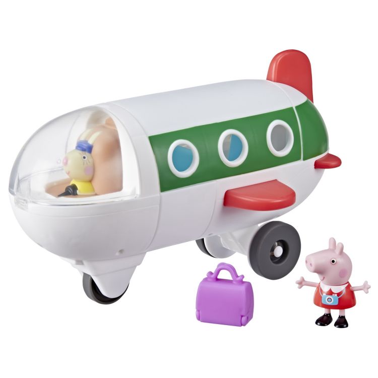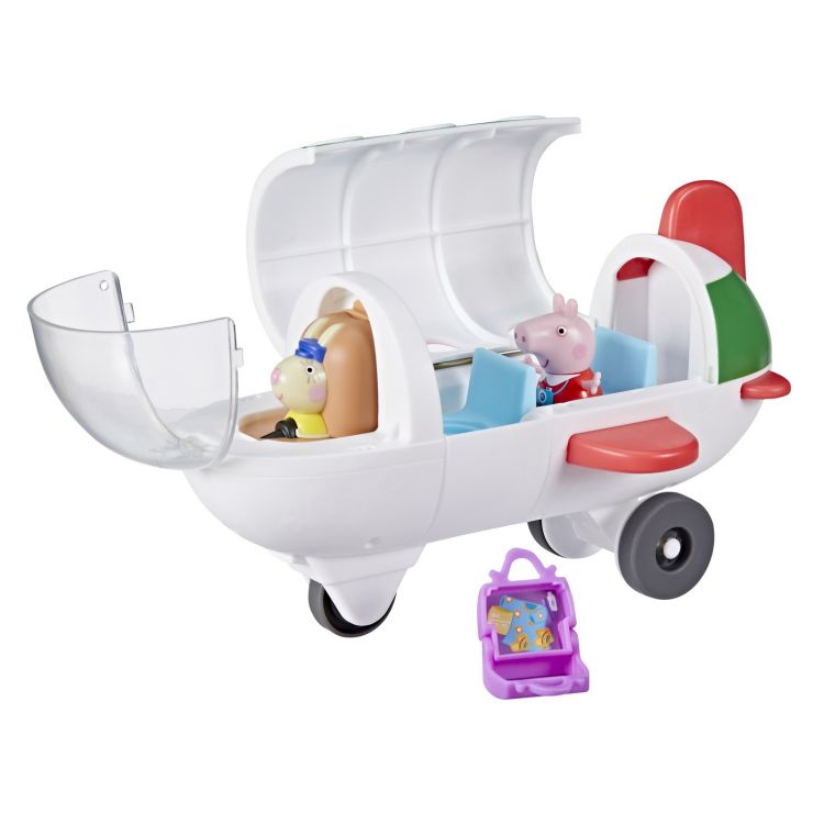 Prescolarii si fanii Peppa Pig de la 3 ani in sus vor fi incantati de aceasta jucarie Air Peppa. Inspirat de vehiculul vazut in serial, vine cu o figurina Peppa Pig. O silueta atasata Miss Rabbit este asezata in cabina de pilotaj si se poate intoarce pentru a face loc unui alt pilot! Balamalele superioare ale avionului se deschid, scarile se pliaza, iar portbagajul din spate se deschide, de asemenea. Sunt locuri pentru 3 figurine in total. Valisa lui Peppa se deschide si se inchide si se potriveste bine in spatele banchetei din spate.