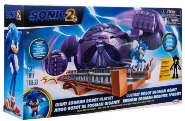 Set de joaca din filmul Sonic the Hedgehog 2. Lupta pentru a invinge robotul Giant Eggman al lui Robotnik cu acest set de joaca bazat pe scena finala din filmul Sonic 2. Setul include o figurina Super Sonic exclusiva de 6 cm. Misca bratele pentru a zdrobi adversarul. Foloseste puntea pentru a lansa figurina Super Sonic si a-l invinge pe robotul Giant Eggman. Setul de joc include robotul Giant Eggman, un pod si o figura de actiune Super Sonic. Recomandat copiilor de la 3 ani in sus.