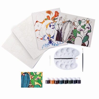 Opere de arta prind viata cu ajutorul culorilor de acuarela, pe masura ce colorati sabloanele cu tehnica traditionala si cu tehnica cu ceara. Amestecuri si intensitati diferite ale culorilor va vor introduce in lumea minunata a desenului. Setul contine 2 sabloane semi-colorate pentru a practica tehnica conturului cu ceara, 2 sabloane albe pentru a practica tehnica traditionala a acuarelelor, 8 vopsele lichide de acuarela, o paleta, o pensula si un ghid cu instructiuni detaliate pentru colorat. Potrivit pentru copiii de la 6 ani.