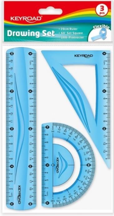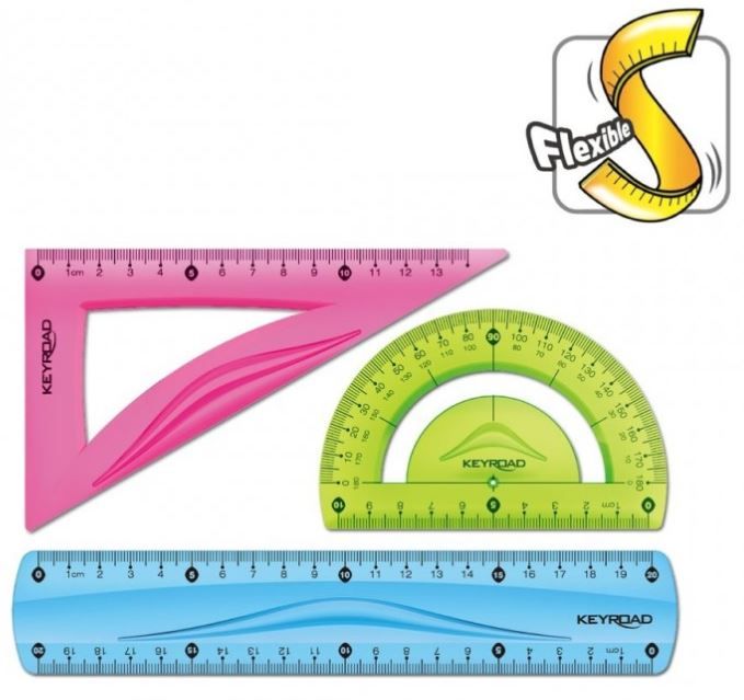 Set geometrie Keyroad KR970858, 20cm, PVC, diverse culori, flexibil, blister 3 piese
