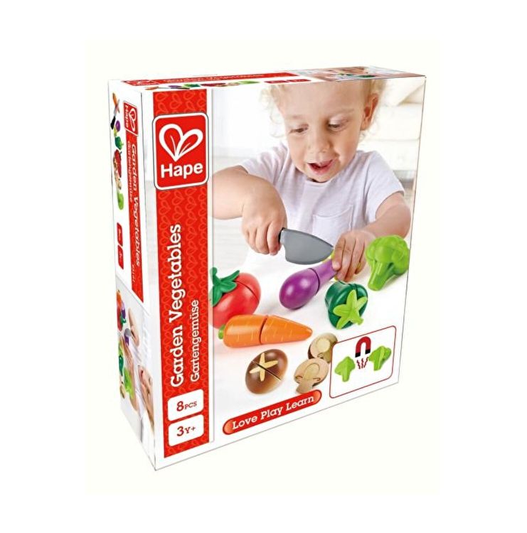 Nu este nimic mai sanatos decat legumele proaspete! Taiati tulpinile si apoi folositi cutitul pentru a taia ardeiul verde, rosiile si multe altele. Legumele sunt tinute impreuna cu file auto-lipite si se separa pentru un realism suplimentar. Asamblati ingredientele pe care doriti sa le preparati. Aduce ingredientele tocate impreuna intr-un vas. Poate o salata sanatoasa sau un ratatouille francez? Include o rosie, un ardei verde, o ceapa, un morcov, o vanata, o conopida, doua ciuperci si un cutit. Ingredientele se despart si tulpinile pot fi indepartate pentru un plus de realism. Mare pentru invatarea copiilor despre ingrediente, gatit si alimentatie sanatoasa.