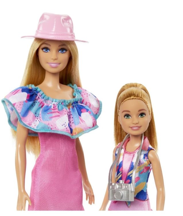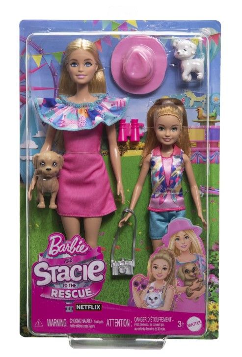 Joaca-te cu acest set de papusi unic, care include papusa Barbie si sora ei mai mica, Stacie.