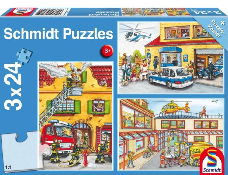 -Set puzzle 3 x 24 piese, Pompierii si politia, Schmidt