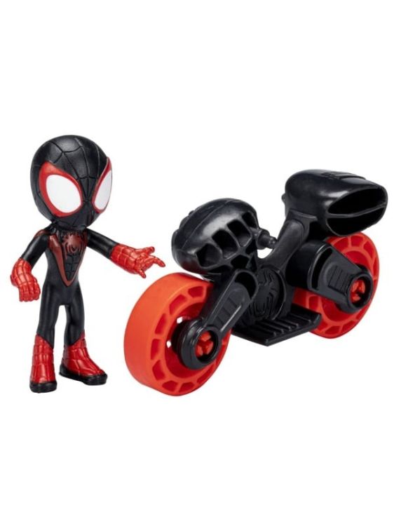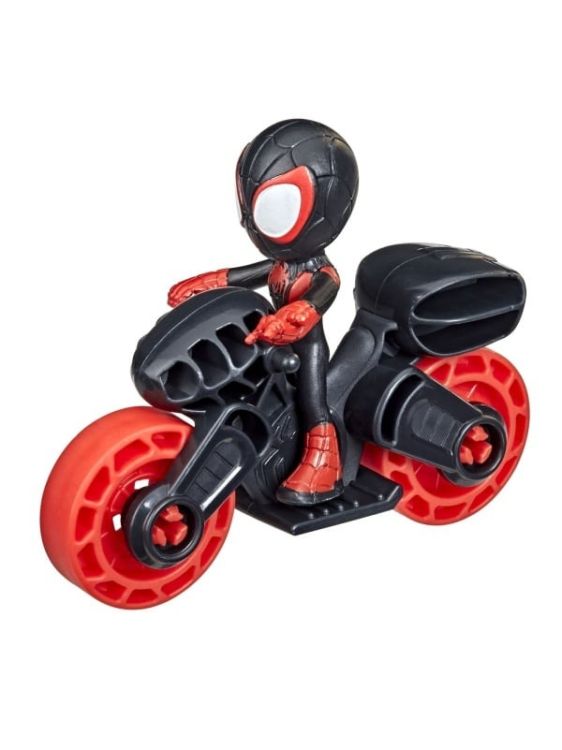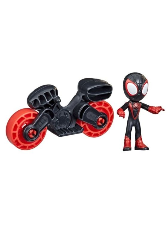 Este timpul Spidey! Aceste jucarii Spidey and His Amazing Friends vin cu o silueta si o motocicleta pentru o joaca plina de actiune. Silueta de 2, 5 inci poate merge cu adevarat cu bicicleta, astfel incat prescolarii isi pot imagina ca se vor ajuta cu echipa Spidey. Cu aceste seturi de figurine si vehicule Marvel prescolare, distractia este la o plimbare distanta! Aceste seturi de jucarii Spidey sunt cadouri grozave de sarbatori sau de ziua de nastere pentru copiii de la 3 ani in sus, care iubesc aventurile lui Spidey, Miles Morales Spider-Man, Ghost-Spider si toti prietenii si dusmanii lor! Acest pachet contine personajul Miles Morales Spider Man.