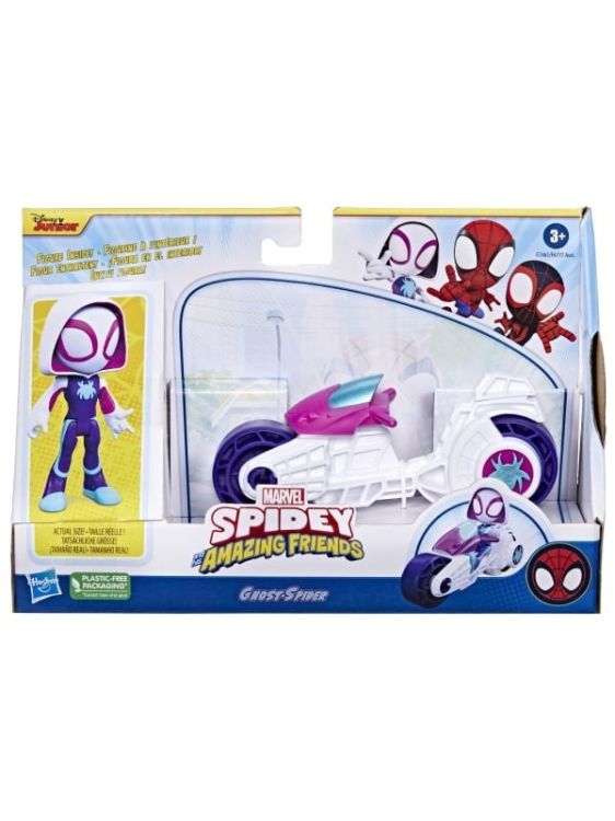Este vremea lui Spidey! Aceasta jucarie Spidey and His Amazing Friends vine cu o figurina si o motocicleta de jucarie pentru o joaca plina de actiune. Figurina de 10 cm poate merge cu adevarat pe motocicleta, asa ca prescolarii isi pot imagina ca se indreapta spre aventurile super-eroilor! Cu acest set prescolar Marvel Super Hero si vehicul, distractia este la doar o plimbare! Acest set de jucarii este un cadou grozav de sarbatori sau de ziua de nastere pentru copiii de la 3 ani si peste care iubesc aventurile lui Spidey, Miles Morales Spider-Man, Ghost-Spider si toti prietenii lor. Acest pachet contine personajul Ghost Spider.
