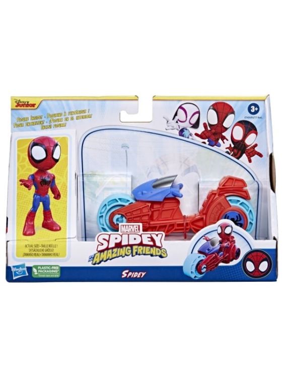Este vremea lui Spidey! Aceasta jucarie Spidey and His Amazing Friends vine cu o figurina si o motocicleta de jucarie pentru o joaca plina de actiune. Figurina de 10 cm poate merge cu adevarat pe motocicleta, asa ca prescolarii isi pot imagina ca se indreapta spre aventurile super-eroilor! Cu acest set prescolar Marvel Super Hero si vehicul, distractia este la doar o plimbare! Acest set de jucarii este un cadou grozav de sarbatori sau de ziua de nastere pentru copiii de la 3 ani si peste care iubesc aventurile lui Spidey, Miles Morales Spider-Man, Ghost-Spider si toti prietenii lor. Acest pachet contine personajul Spidey.