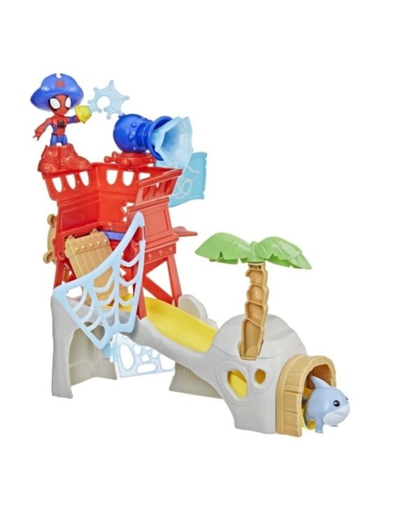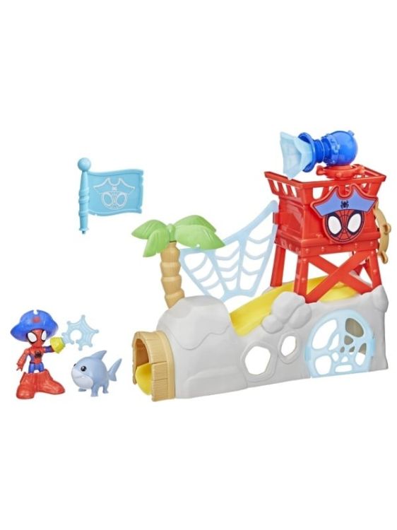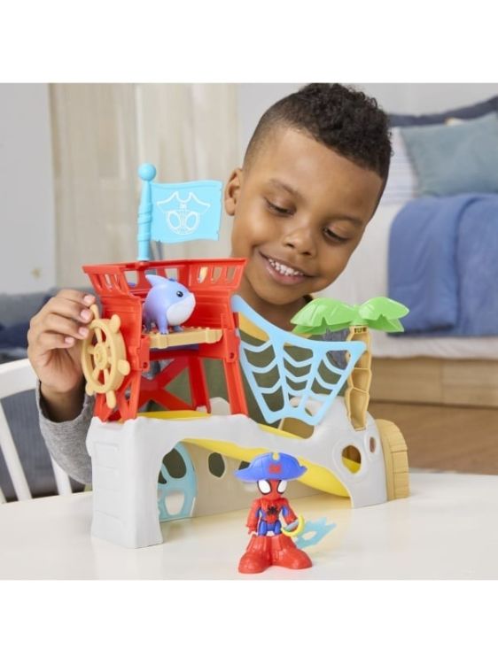 Copiii isi pot imagina actiune si aventura palpitanta cu Insula lui Spidey si Prietenii Sai Uimitori, de la Hasbro! Setul de joaca include o jucarie Spidey pozitionabila de 7, 6 cm, precum si figurina slugar Jeff Rechinul Lastarilor si dispune de o usa trapa cu tobogan, dispozitiv de capturare a pesterii si multe altele. Transforma-l pe Spidey in Spidey Pirat cu o palarie de pirat detasabila, cizme si accesorii cu carlig. De asemenea, vine cu un palmier detasabil, un steag si un tun din panza de panza pe care figurina Spider-Man le poate tine cu mana sa tip C-grip! Incurajati joaca imaginativa cu pirati pentru baieti si fete cu varsta de 3 ani si peste, cu mai multe jucarii Marvel, Spidey si Prietenii Sai Uimitori, inclusiv figurine, vehicule de jucarie si seturi de joaca! Jucariile Marvel cool sunt cadouri grozave pentru copii, de zile de nastere, sarbatori si alte ocazii speciale!