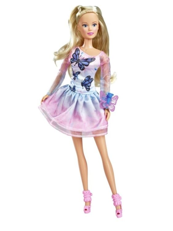 Steffi LOVE intr-un look fluture Steffi poarta o rochie roz si albastra cu un frumos model cu fluturi. Detaliile fluture albastre adauga un farmec aparte tinutei sale. Setul include o bratara asortata cu brosa fluture, completand perfect look-ul lui Steffi si inspirand idei de joaca si mai creative. Cu o inaltime de 29 cm, Steffi este companionul ideal pentru jocuri de rol imaginative si aventuri la moda. Acest set este perfect pentru copiii care iubesc moda si stilul.