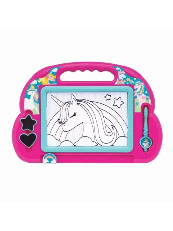 Deseneaza nenumarate desene oriunde te-ai afla cu Magic Scribbler Fantasy Dreams. O panza, o radiera magica, un pix magnetic cu sfoara, pentru a nu se pierde si doua stampile ii ofera copilului posibilitatea de a scrie si sterge de nenumarate ori. Asadar, distractia nu are limite! Deseneaza unicornii visurilor tale si fa-i si mai impresionanti folosind stampilele. Deseneaza-sterge cu o singura miscare si ia-o de la capat! Ideal ca si cadou, deoarece ajuta la dezvoltarea imaginatiei si a exprimarii de sine a copilului. În plus, nu trebuie sa-ti faci griji ca se murdaresc copilul, casa sau masina. Nu contine vopsele si, prin urmare, nu pateaza. Ce este cel mai bun? Nu mai trebuie sa-ti faci griji cu privire la imperfectiunile de pe picturile tale, deoarece poti sterge si desena de cate ori doresti!