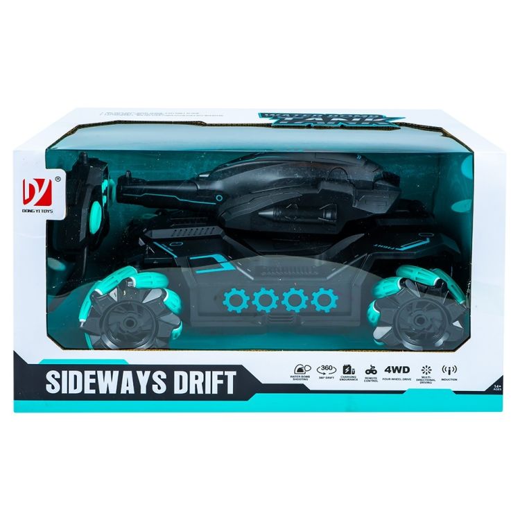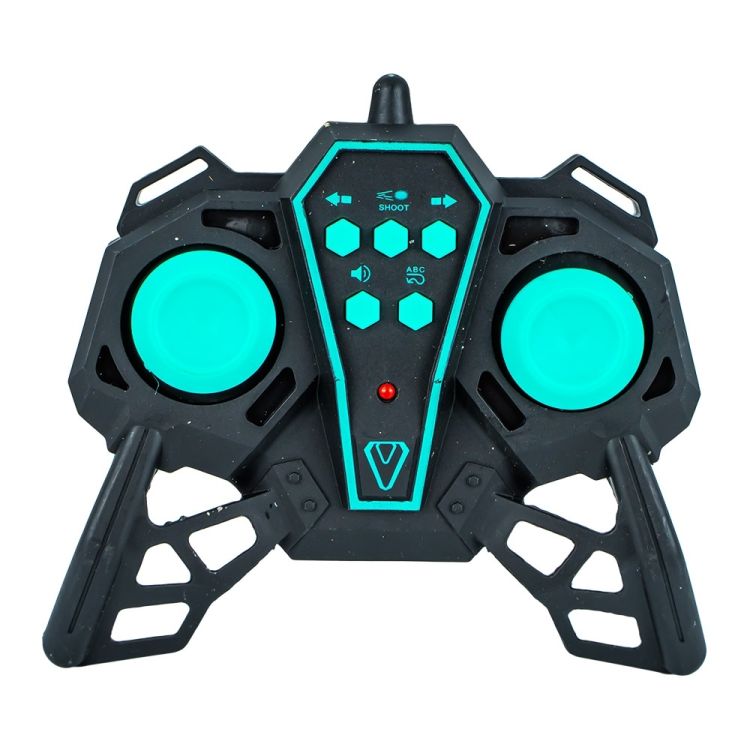 - Telecomanda ergonomica, cu conectare pe frecventa 2. 4 GHz, ofera un control precis si stabil, fara interferente, chiar si in cadrul competitiilor multiplayer. Comenzile RC-ului includ: deplasare inainte-inapoi, stanga-dreapta, drifturi laterale, lansare proiectile, declansare sunete, oprire si mod demonstrativ.