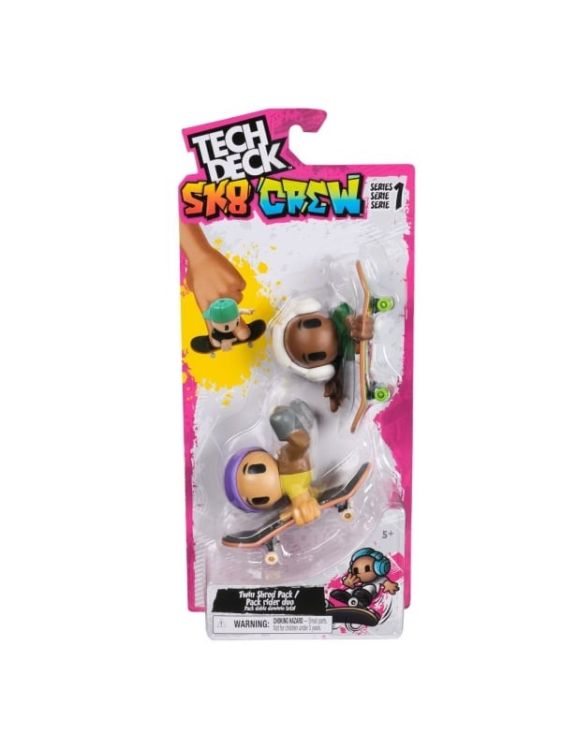 Învata cum sa faci skating cu degetul cu noul set de 2 piese Tech Deck Echipa Sk8. Fiecare pachet vine cu doua placi Tech Deck, doi membri Echipa Sk8 si doua foi de autocolante pentru a incepe. Cu opt figurine Echipa Sk8 de colectionat, imbunatateste-ti aderenta pentru a stapani miscari precum ollies si power slides. Fixeaza membrul echipei de skateboard pe placa de skateboard si incepe sa exersezi tehnicile corecte. Scaneaza codul QR pentru tutoriale video pentru a studia miscarile preferate. Ia-ti Echipa Sk8 intr-o aventura cu Autobuzul Ultra Sk8 pentru trucuri mai mari si depozitare pentru Echipa Sk8 (vandut separat). Plimba-te cu noile tale skateboard-uri cu degetul pe seria X-Connect. Construieste seturile de rampe Quarter Bowl Ruckus sau Pyramid Shredder 2. 0 (fiecare se vinde separat) pentru a-ti distruge placile de skateboarding pe obstacolele preferate de pe placile pentru deget, cum ar fi Tech Deck Skatepark. Exista o multime de punti, figuri de jucarie si seturi de joaca de colectionat! Da-te cu placa, fa intoarceri si grind-uri cu placile de deget Tech Deck si BMX de la companii reale de skating! Mini skateboard-urile Tech Deck pentru degete si seturile de rampa reprezinta cadoul perfect de jucarii pentru fetele de 6-8 ani care iubesc jucariile mici, jucariile cool si jucariile actuale. Daca sunteti in cautarea unor jucarii pentru baieti de 3 ani, luati in considerare Tech Decks ca o alternativa la masinile de jucarie ca si jucarii pentru baieti cu varsta de 6-8 ani. Începeti de la mic, mergeti la mare si explorati lumea de skating cu degetul cu Tech Deck Echipa Sk8 Pachet de 2.