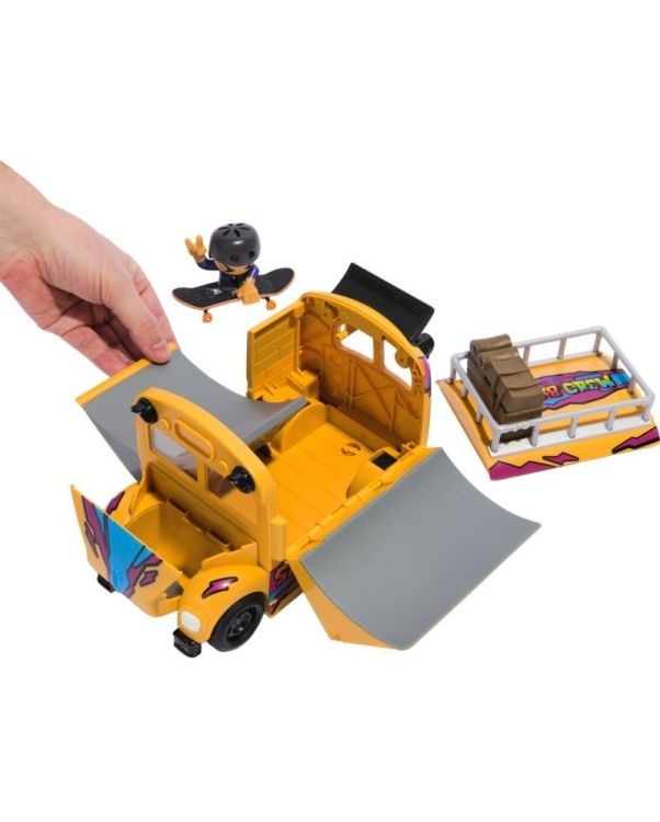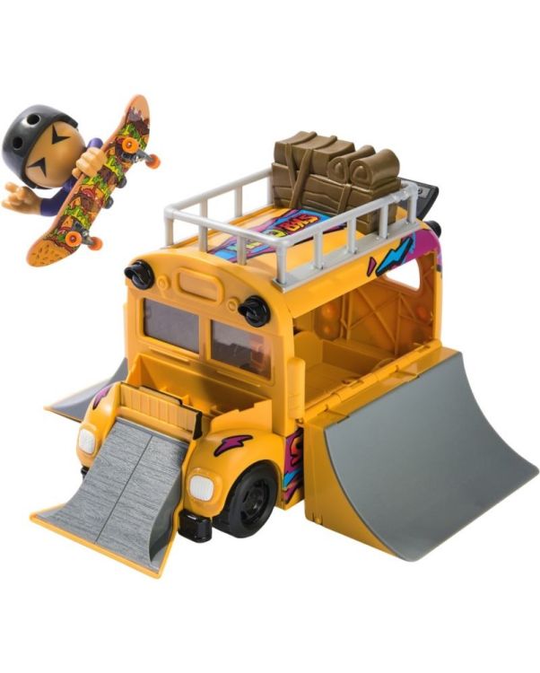 Fa-ti o placa pentru deget cu stil cu Tech Deck 2-in-1 Autobuz Ultra Transformer Sk8. Plimba-te cu Autobuzul Skate cu anvelope de lucru reale. Acest skatepark se pliaza cu 3 rampe pentru a-ti exersa abilitatile de skateboarding. Foloseste partea de sus a Autobuzului Skate Bus pentru a te misca si a crea noi combinatii. Pluteste in aer cu doua sferturi de teava si cu rampa de pe capota autobuzului. Fixeaza membrul echipei de skateboard pe placa de skateboard si incepe sa exersezi tehnicile corecte. Scaneaza codul QR pentru tutoriale video pentru a studia miscarile preferate. Sa faci ordine este usor cu Autobuzul Sk8. Rabateaza rampele si asaza figurina Echipa Sk8 si placa de deget in interior pentru depozitare si ia-ti aventurile in deplasare. Colectioneaza toate cele 15 figurine Echipa Sk8 pentru a-ti creste nivelul colectiei (vandute separat). Plimba-te cu noile tale skateboard-uri cu degetul pe seria X-Connect. Construieste seturile de rampe Quarter Bowl Ruckus sau Pyramid Shredder 2. 0 (fiecare se vinde separat) pentru a-ti distruge placile de skateboarding pe obstacolele preferate de pe placa de deget, cum ar fi Tech Deck Skatepark. Exista o multime de punti, figuri de jucarie si seturi de joaca de colectionat! Da-te cu placa, fa intoarceri si grind-uri cu placile de deget Tech Deck si BMX de la companii reale de skating! Mini skateboard-urile Tech Deck pentru degete si seturile de rampa reprezinta cadoul perfect de jucarii pentru fetele de 6-8 ani care iubesc jucariile mici, jucariile cool, jucariile actuale. Daca sunteti in cautarea unor jucarii pentru baieti de 3 ani, luati in considerare Tech Decks ca o alternativa la masinile de jucarie ca si jucarii pentru baieti cu varsta de 6-8 ani. Ia astazi acasa Autobuzul Ultra Tech Deck Sk8 si invata sa te dai cu placa de deget.