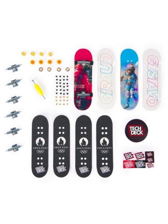 Tech Deck iti aduce experienta reala cu fingerboard-uri autentice de 96 mm de la companiile de skateboard-uri reale! Fiecare prezinta un desen legal de la cele mai mari companii de skateboard-uri din lume, inclusiv Blind, Baker, Primitive, Element, Finesse, Santa Cruz, Plan B, Sk8mafia si Toy Machine. Acest set de 4 include elemente grafice autentice pe care le poti combina asa cum iti doresti. Recreeaza-ti traseele preferate si imbogateste-ti trucurile urmarind sfaturile pentru trucuri online pe techdeck. com. Pe masura ce iti cresti colectia, compara-le online cu instrumentul interactiv pentru colectionari de la Tech Deck. Sunt tone de placi de colectionat! Daca iti doresti o grafica de placa reala de la companiile de skateboard-uri reale, atunci trebuie sa fie Tech Deck - colectioneaza placa!