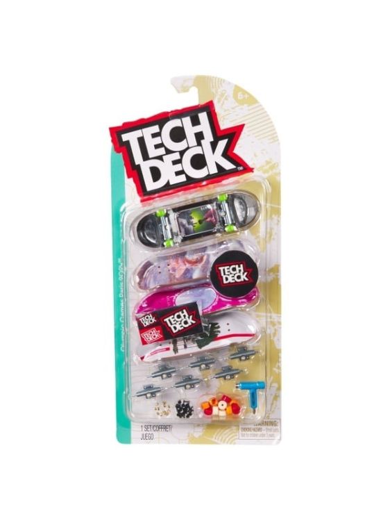 Tech Deck iti aduce experienta reala cu fingerboard-uri autentice de 96 mm de la companiile de skateboard-uri reale! Fiecare prezinta un desen legal de la cele mai mari companii de skateboard-uri din lume, inclusiv Blind, Baker, Primitive, Element, Finesse, Santa Cruz, Plan B, Sk8mafia si Toy Machine. Acest set de 4 include elemente grafice autentice pe care le poti combina asa cum iti doresti. Recreeaza-ti traseele preferate si imbogateste-ti trucurile urmarind sfaturile pentru trucuri online pe techdeck. com. Pe masura ce iti cresti colectia, compara-le online cu instrumentul interactiv pentru colectionari de la Tech Deck. Sunt tone de placi de colectionat! Daca iti doresti o grafica de placa reala de la companiile de skateboard-uri reale, atunci trebuie sa fie Tech Deck - colectioneaza placa!